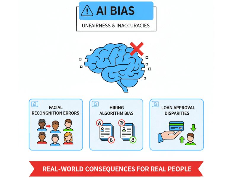 The data that AI is trained on is reflected in it. The results will be biased if the data is biased. For instance, persons of color have historically been misdiagnosed by facial recognition software more frequently than white people.